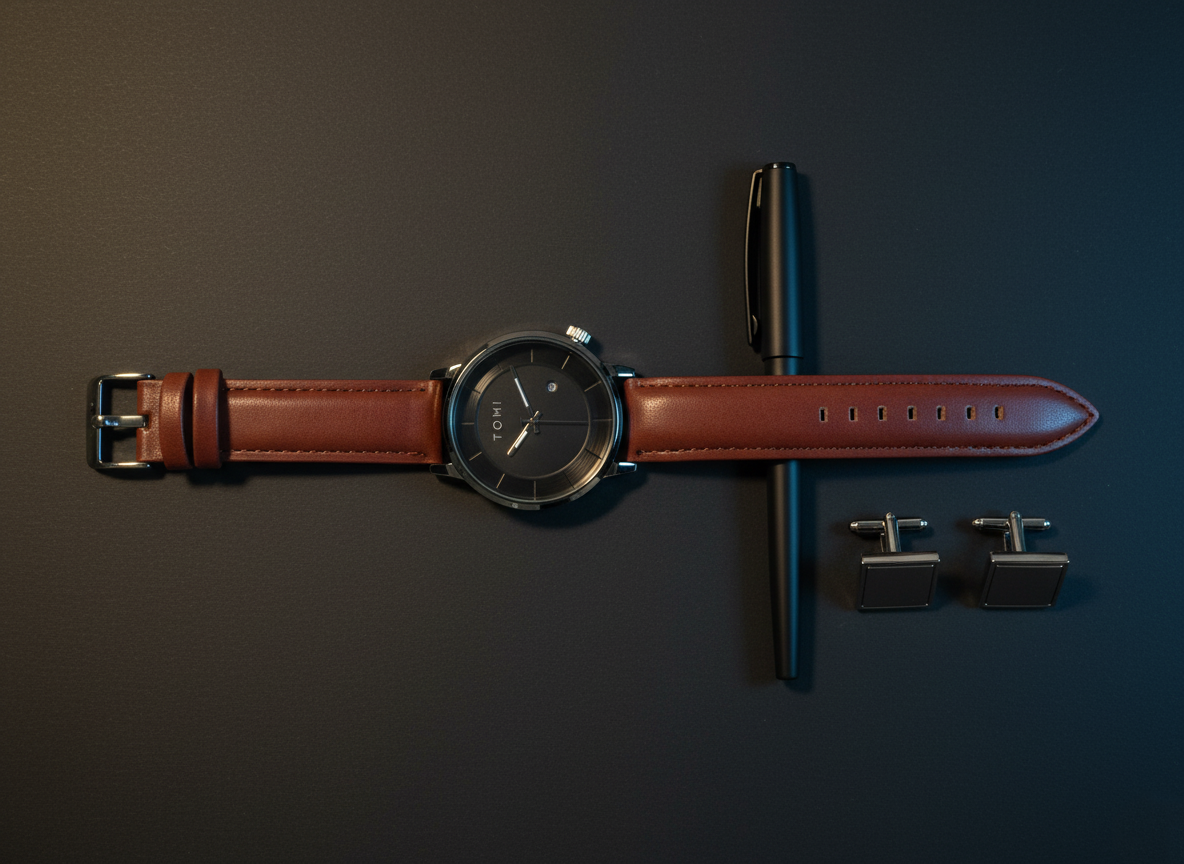 TOMI Date Classic – Minimalist Leather Watch | TLA Pakistan